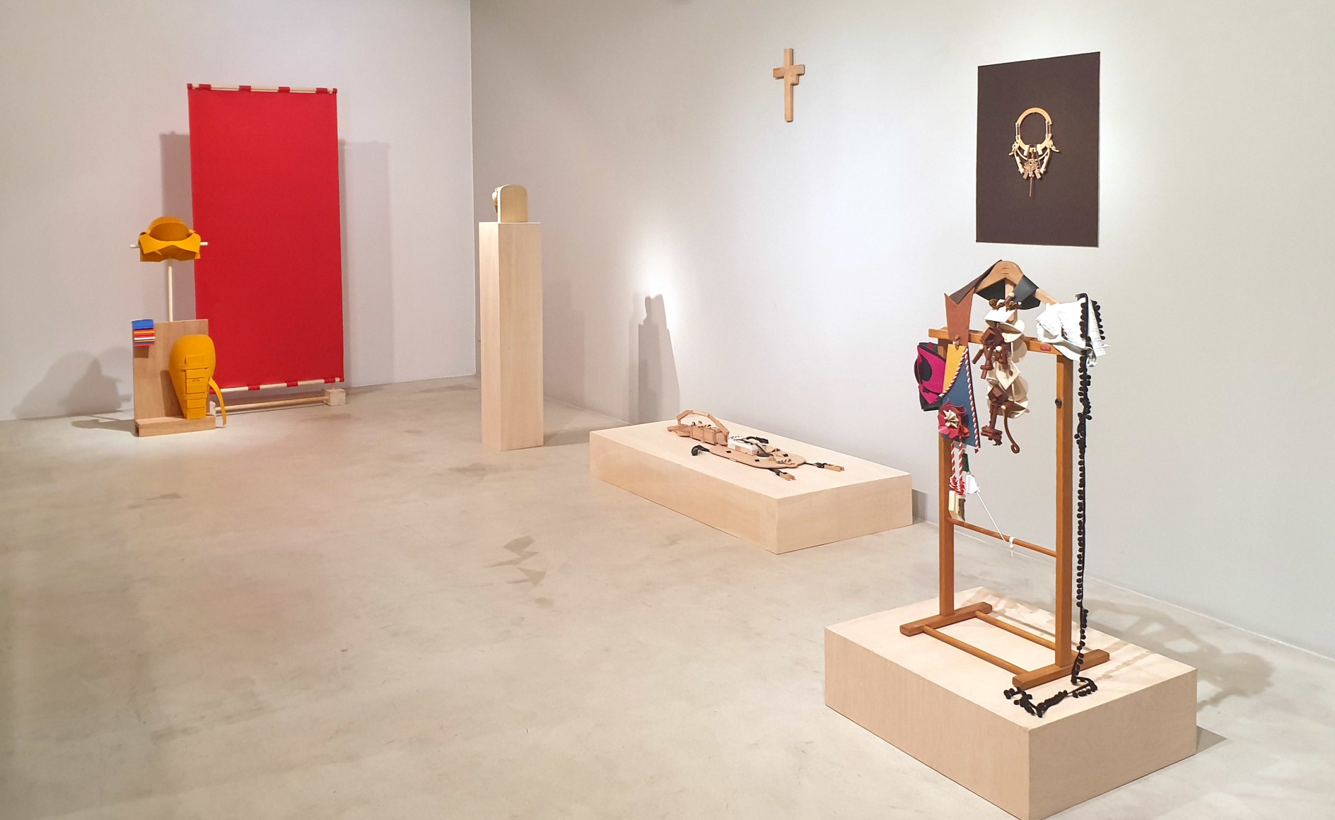 madera y piel, que se muestran al espectador como ejemplos de un diseño imposible, ensimismado, ironizando sobre la relación entre función, forma y manufactura.