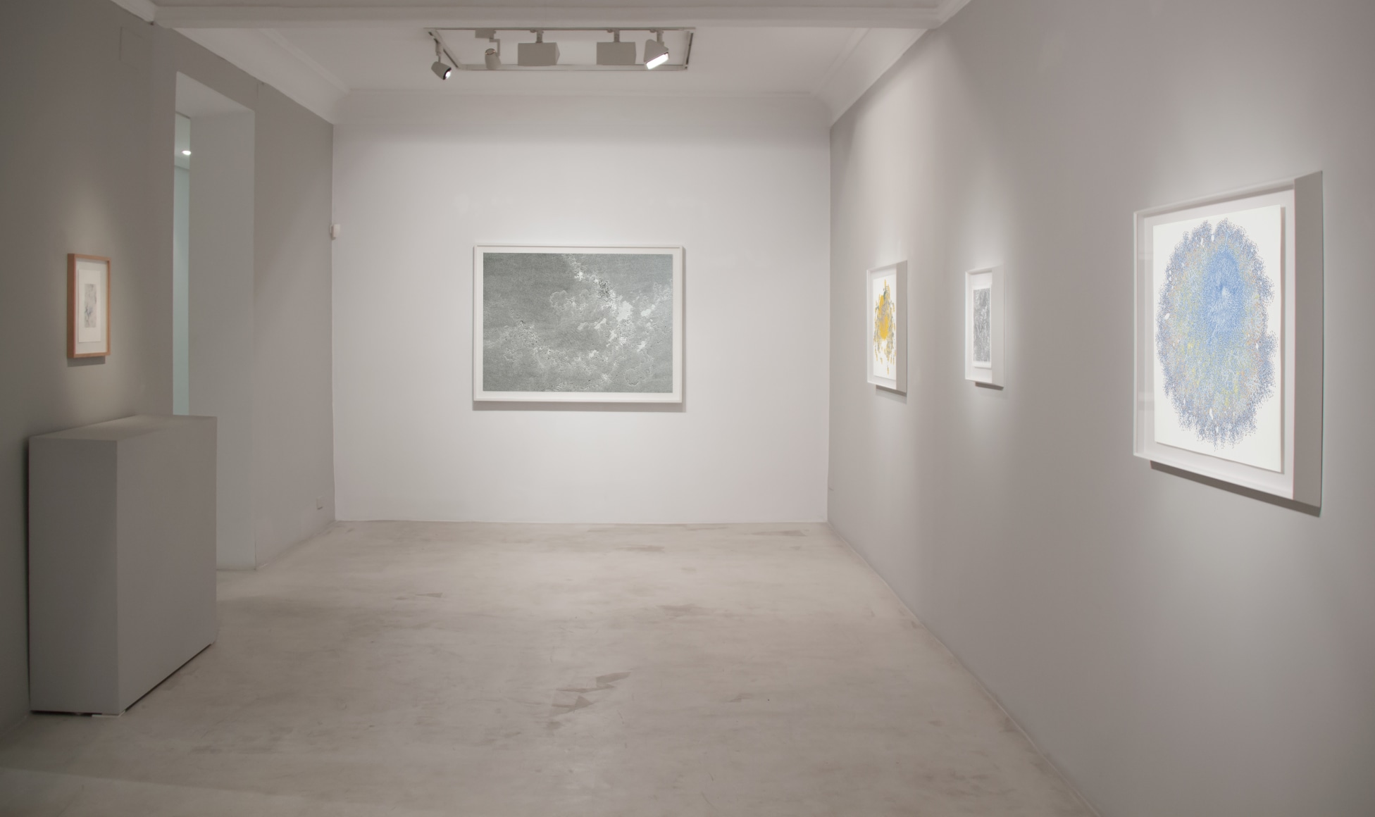 Drawn “all over'' the sheet of paper, or , at times, leaving areas of white spaces untouched, the vibrant colored ink and large graphite drawings offer an imaginary organic world where emptiness and fullness contrast with elegance, in an uncertain tension between predictability and spontaneity. Although non specific, these microscopic organisms are part of a larger topographic map, filled with cellular forms, imaginary rivers , canals , mountains seen far from above, complex unknown planetary systems, a voyage where the eye, travelling inside a delicate web of lines and colors explores at the same time the entire space of the sheet of paper. Zeller’s process is direct and dynamic: Freedom and rigor combined in gestures repeated to the verge of automatism. Like in oriental calligraphy, gestures become strokes driven by auto-imposed conditions whose aim is to avoid the chaos. A main rule is to always respect what has already been put on the paper, where “every line is sovereign territory”, not to be crossed, nor obscured. The artist visual references - topographical maps, satellite, planet and stars photography, biological and schematic diagrams- are essentially bi-dimensional images translating a three dimensional world.